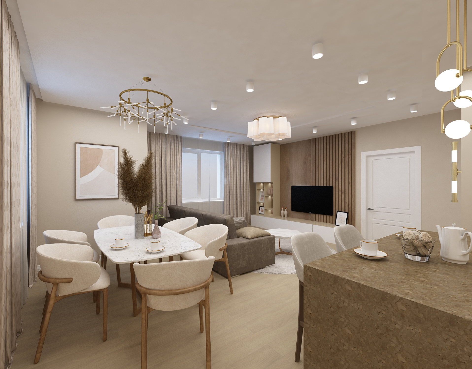 Трёхкомнатная квартира в современном стиле 98,56 м²