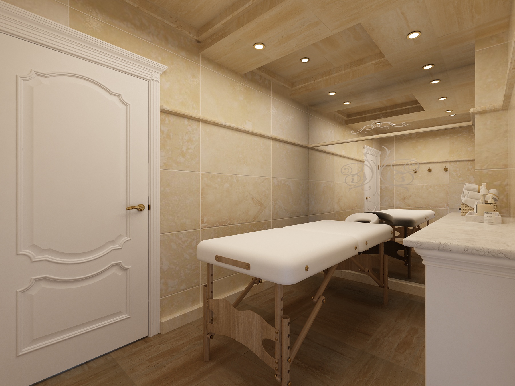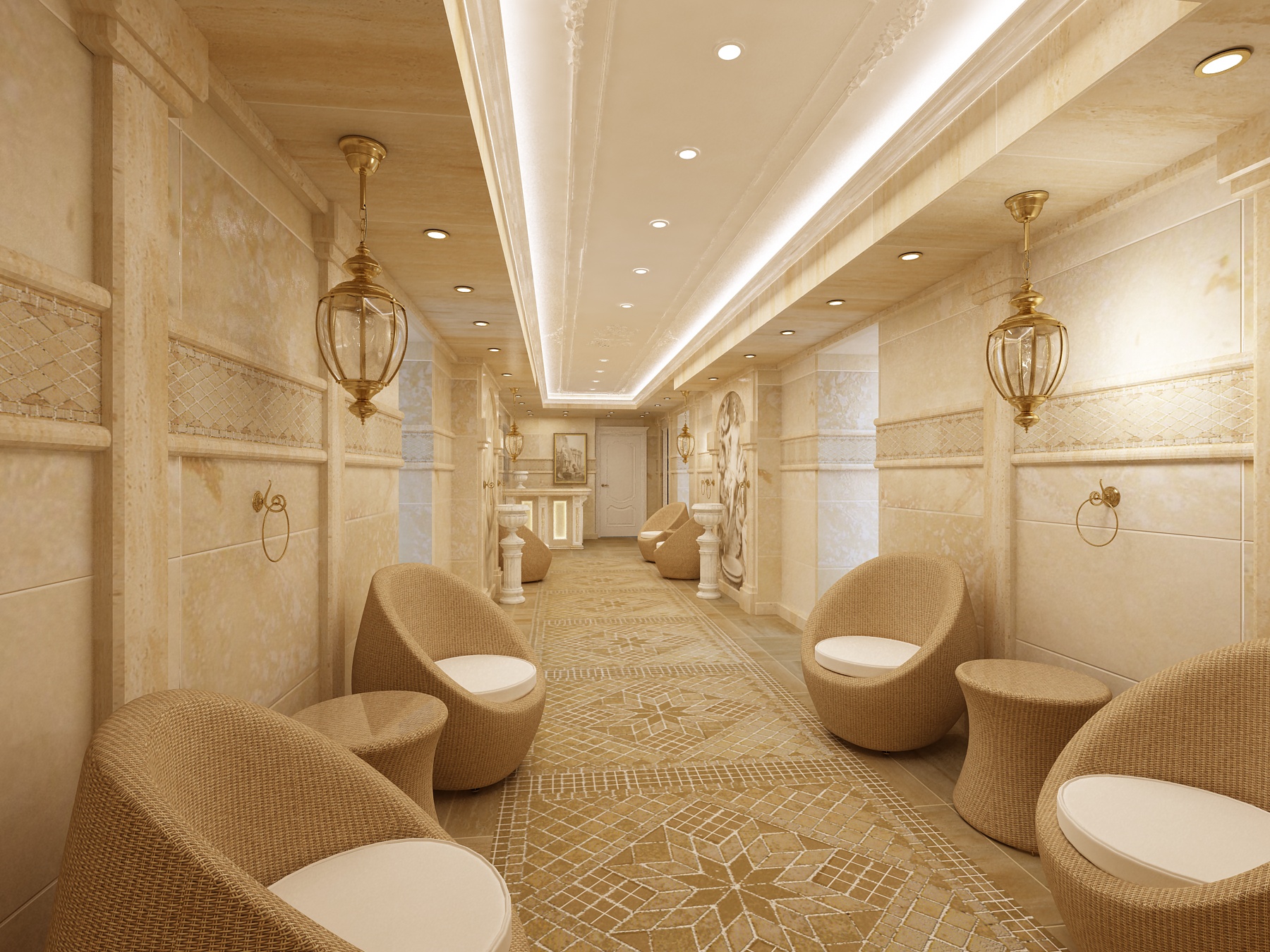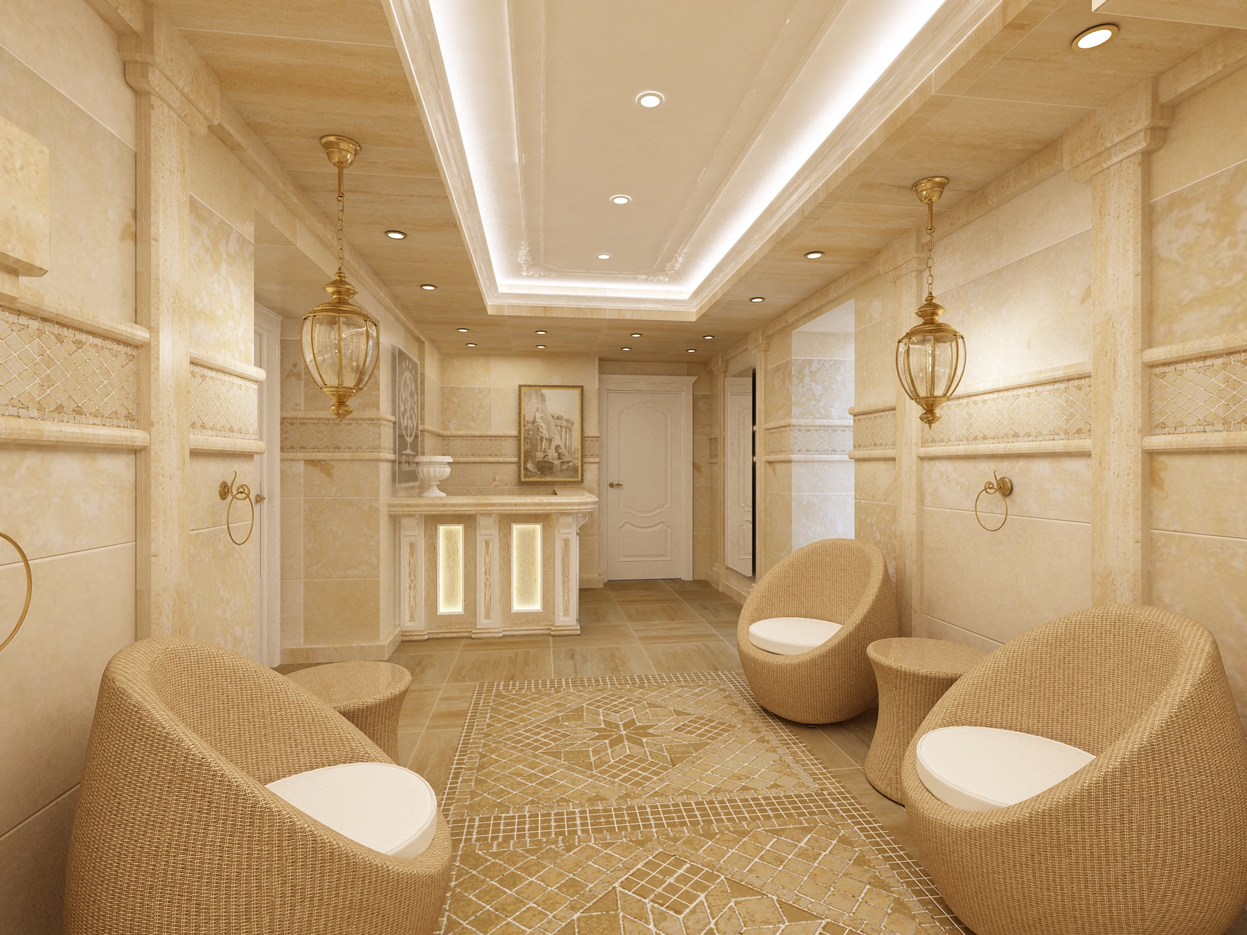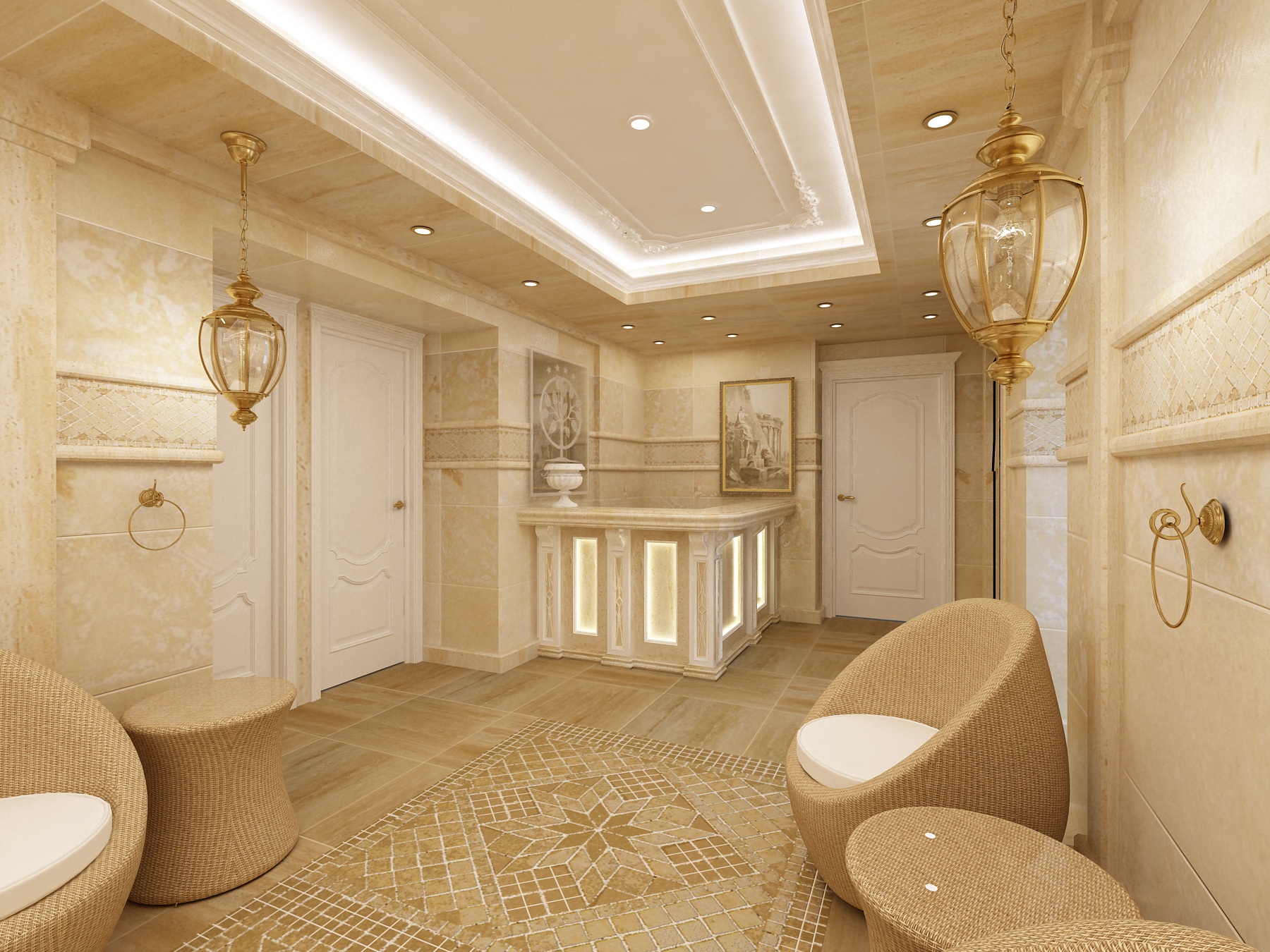 Спа-комплекс в классическом стиле в тёплых оттенках.