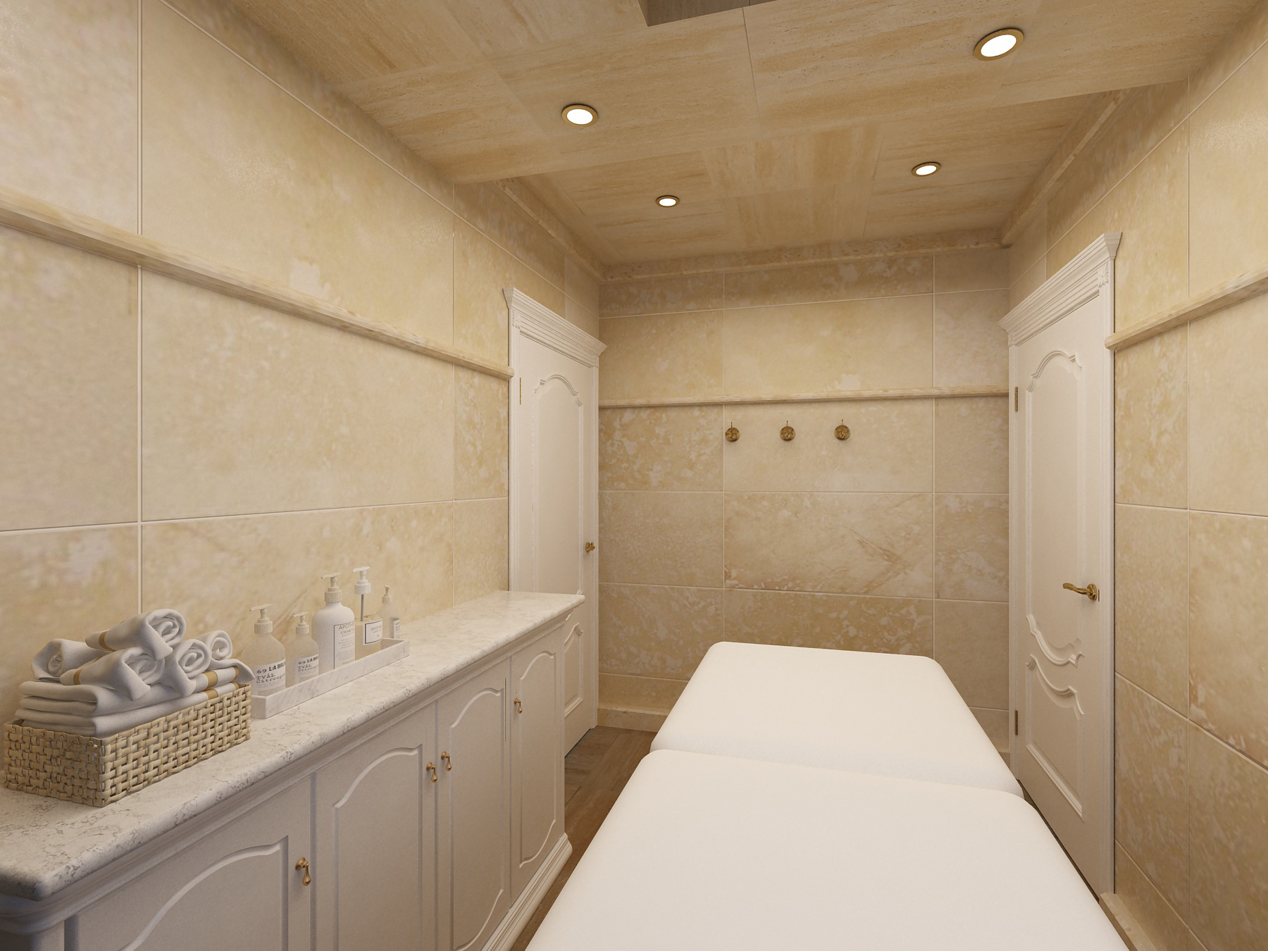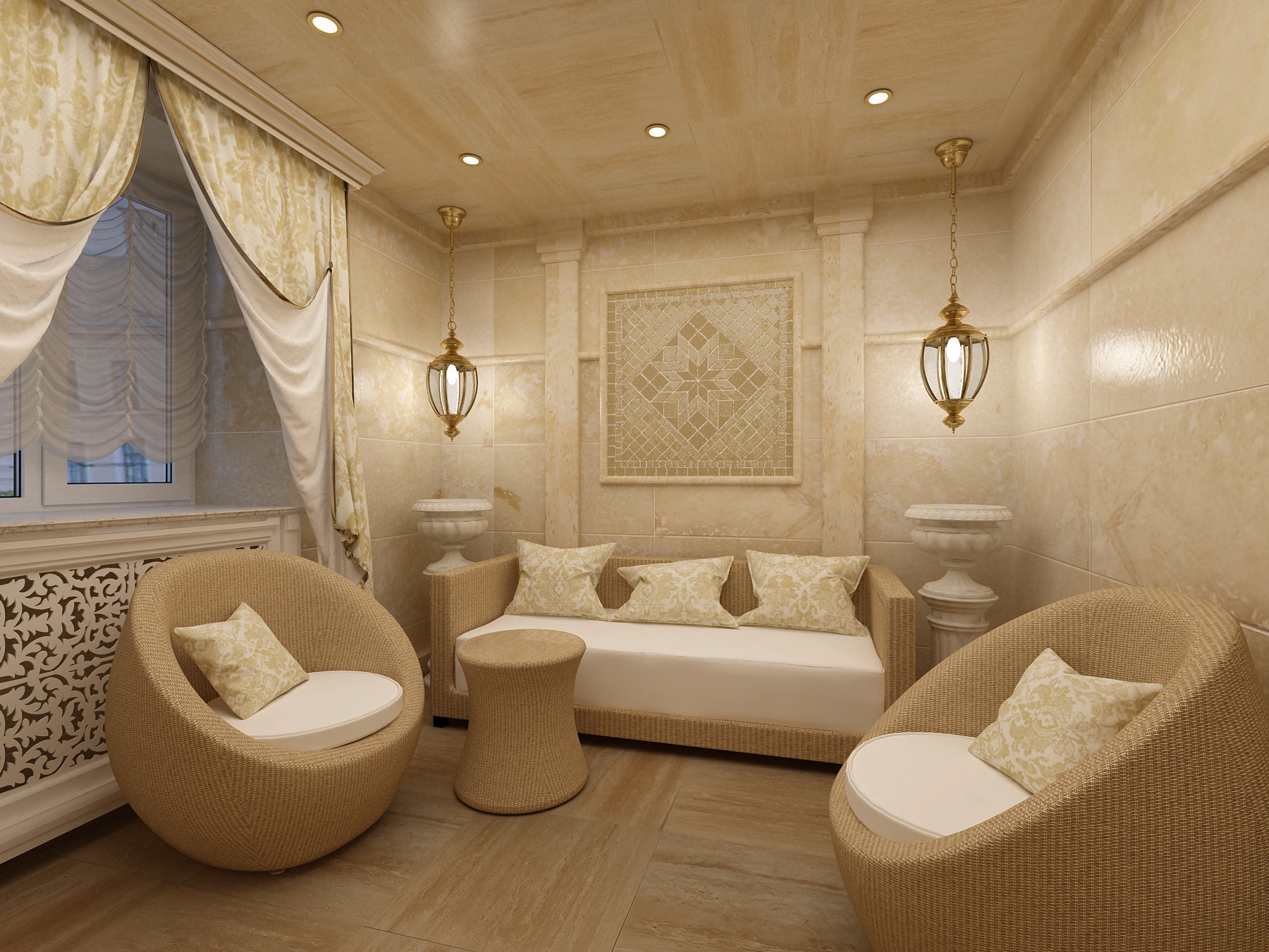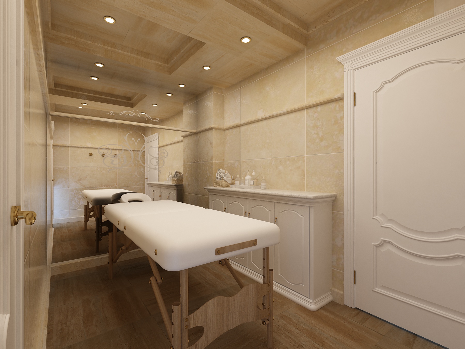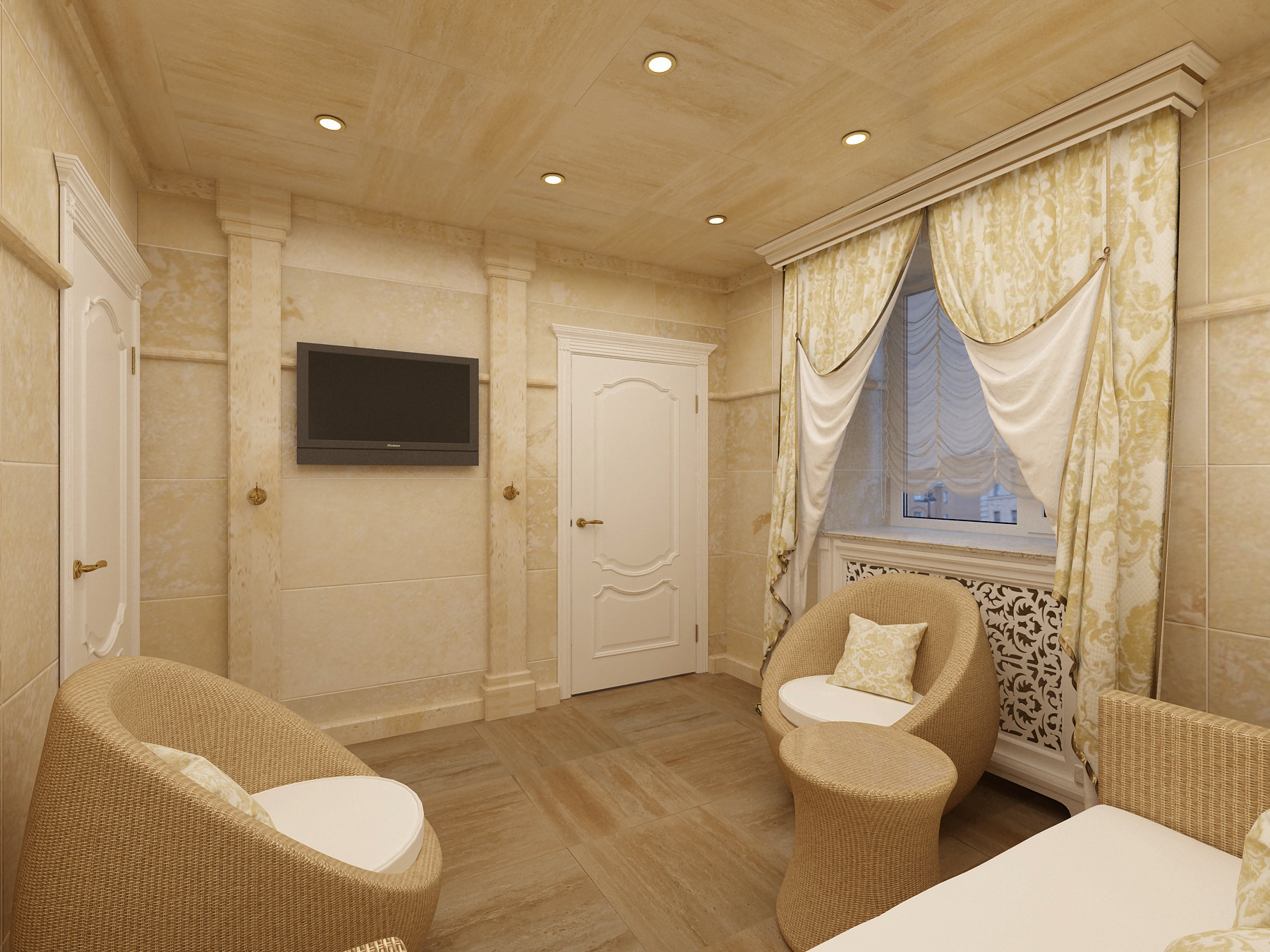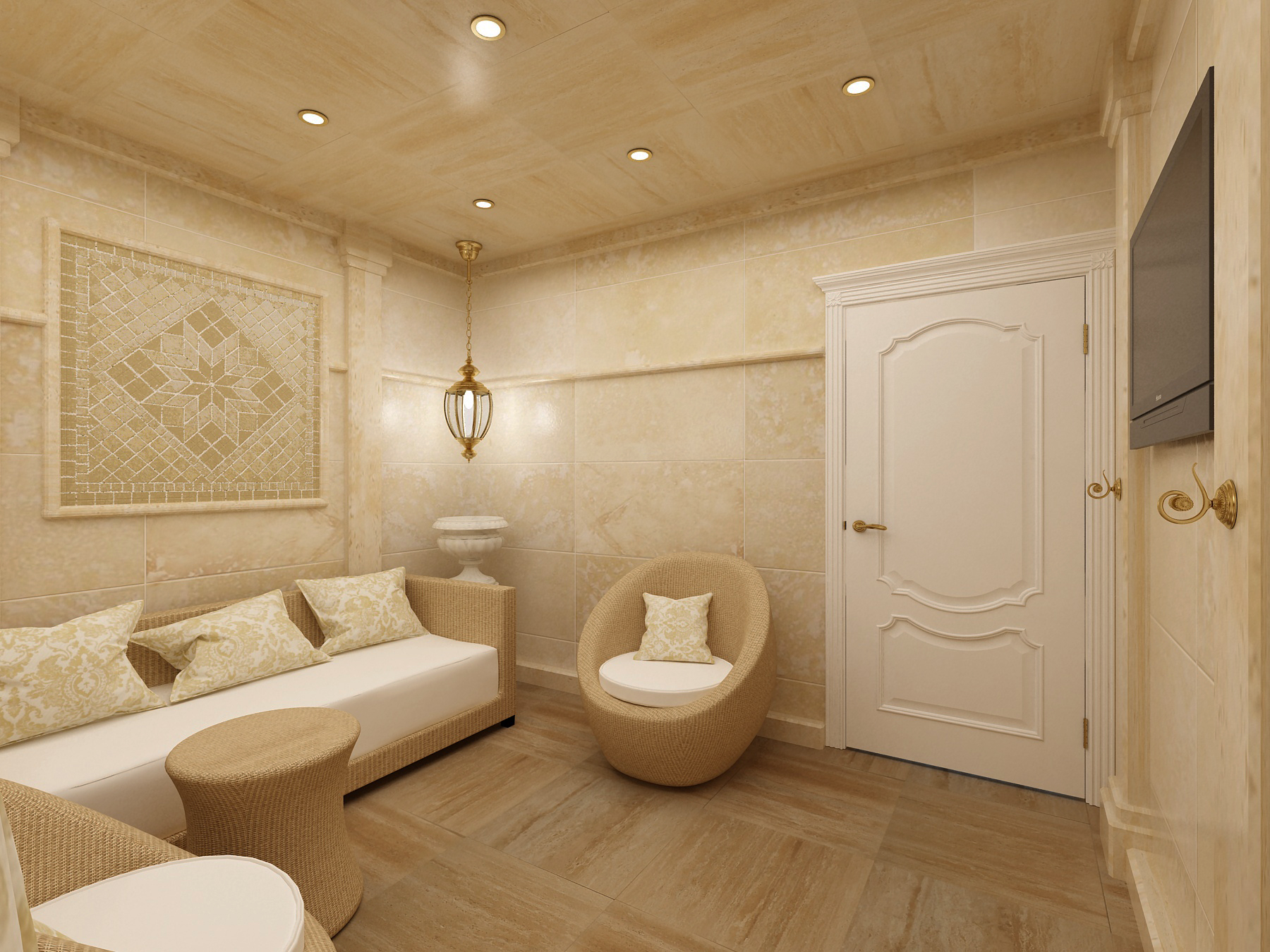Спа-комплекс в классическом стиле в тёплых оттенках.