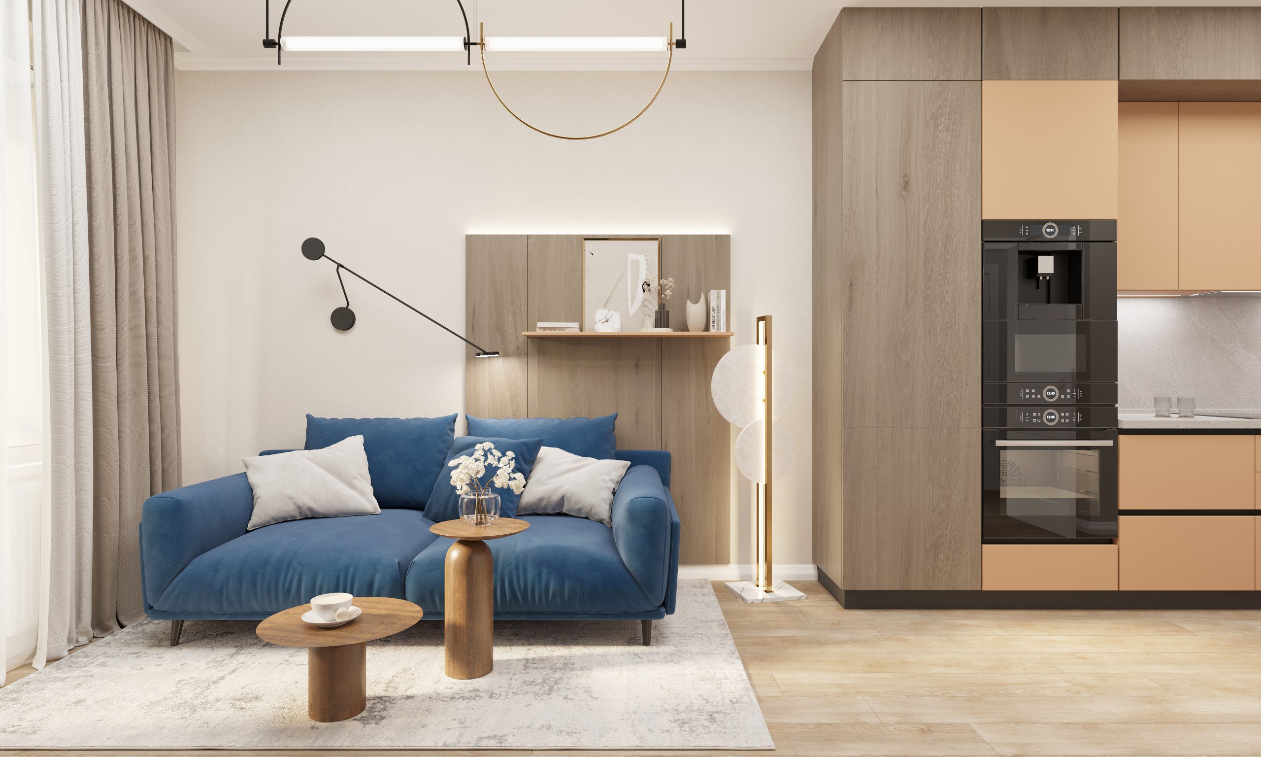 Однокомнатная квартира в современном стиле с яркими акцентами 49,37 м²