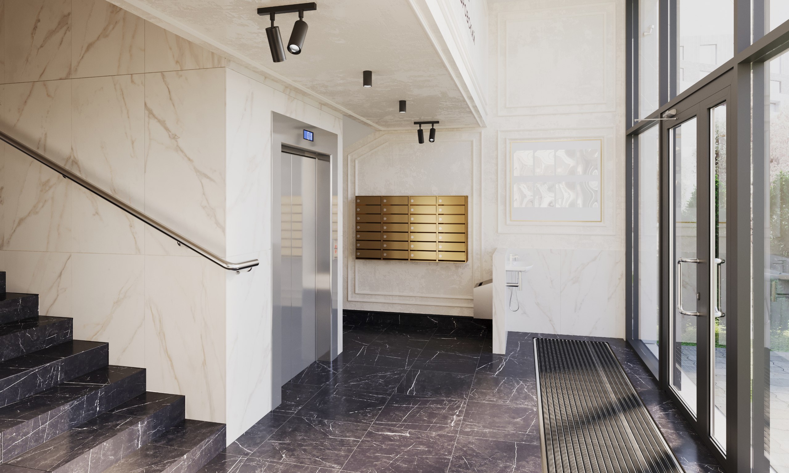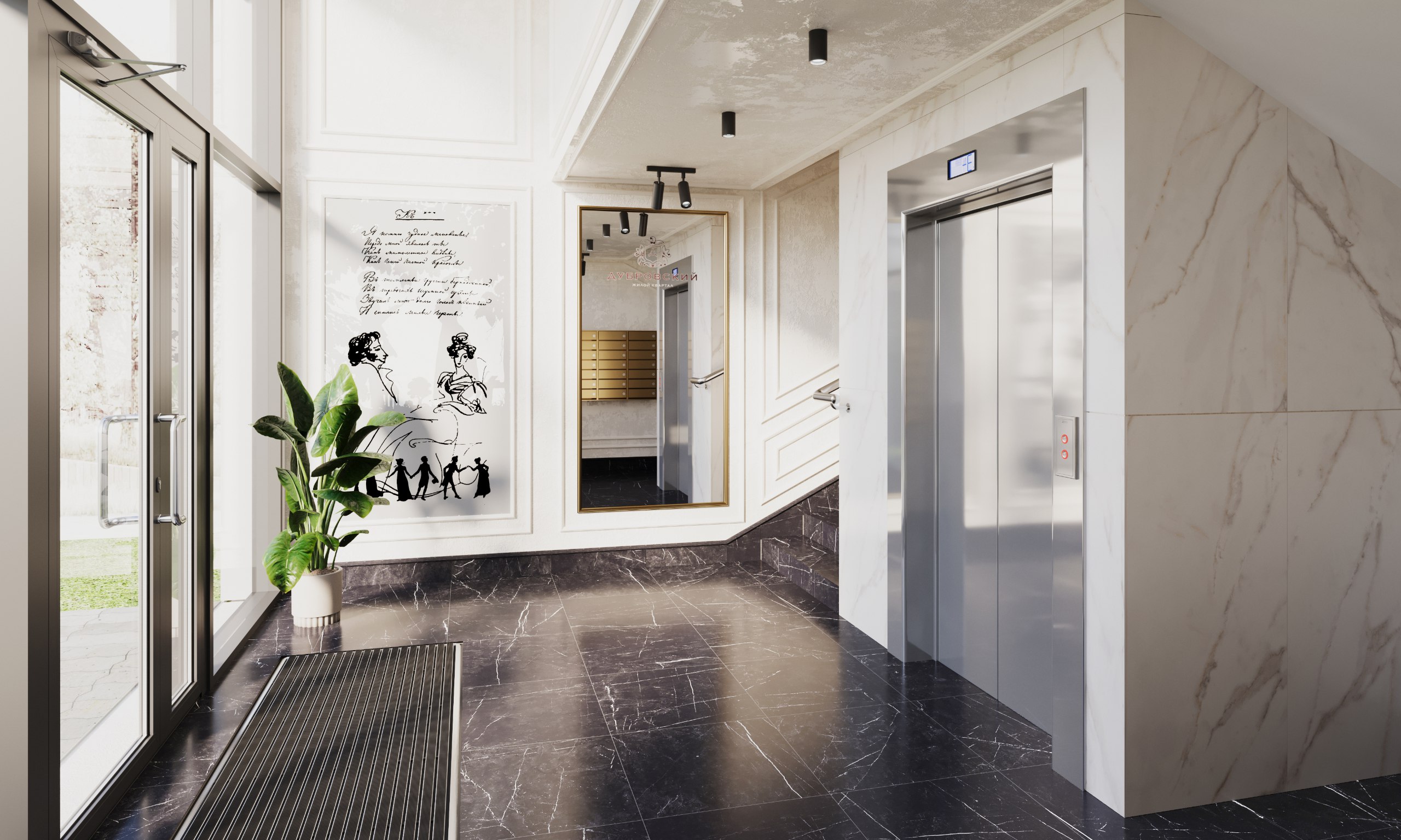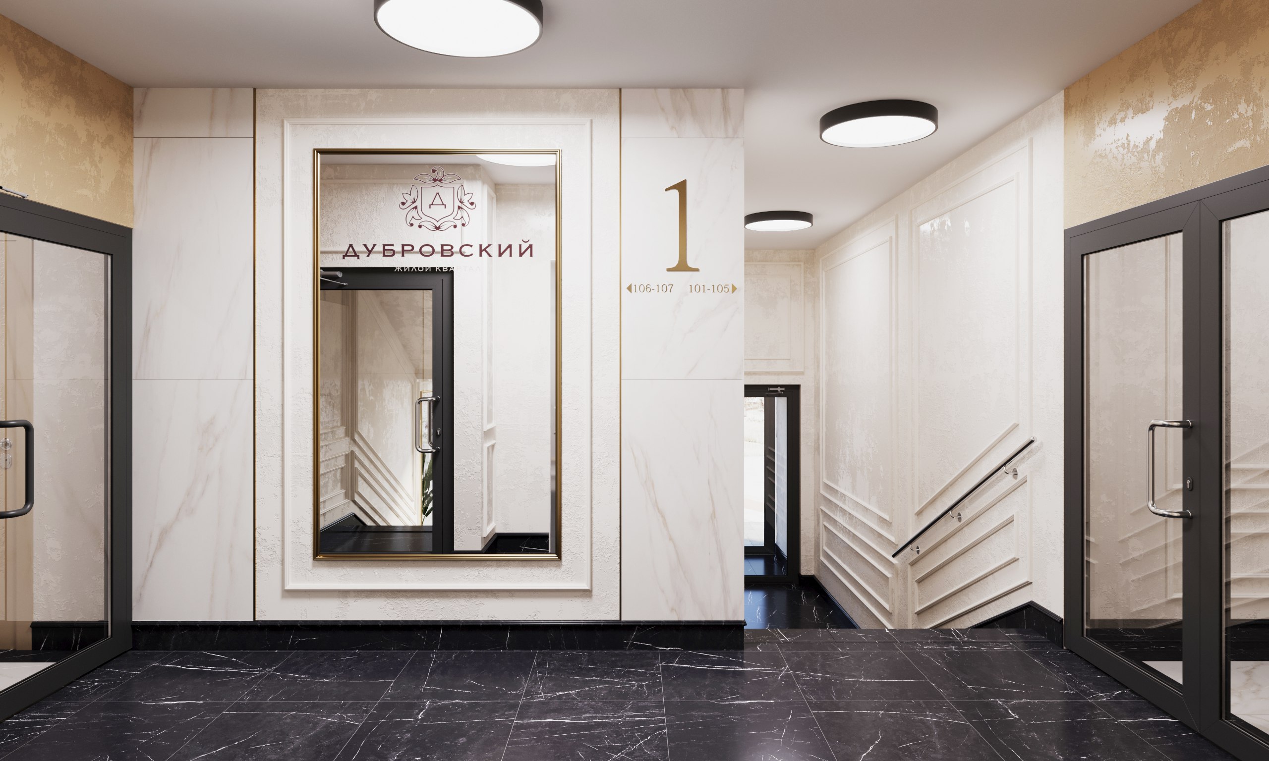 Входная группа жилого комплекса в Пушкинском районе Санкт-Петербурга в классическом стиле.