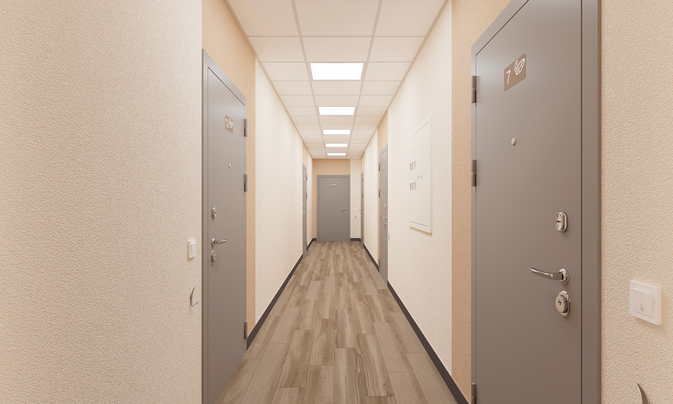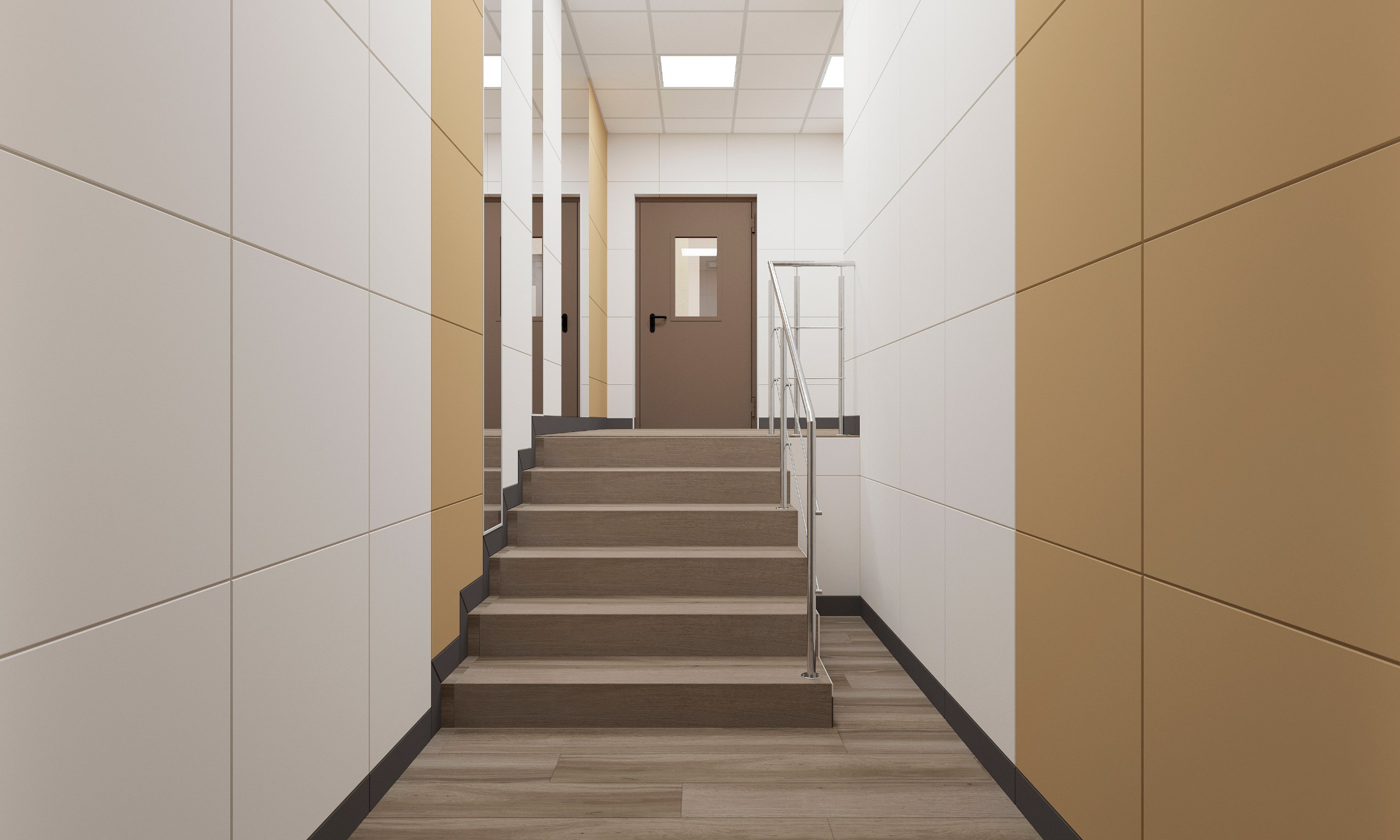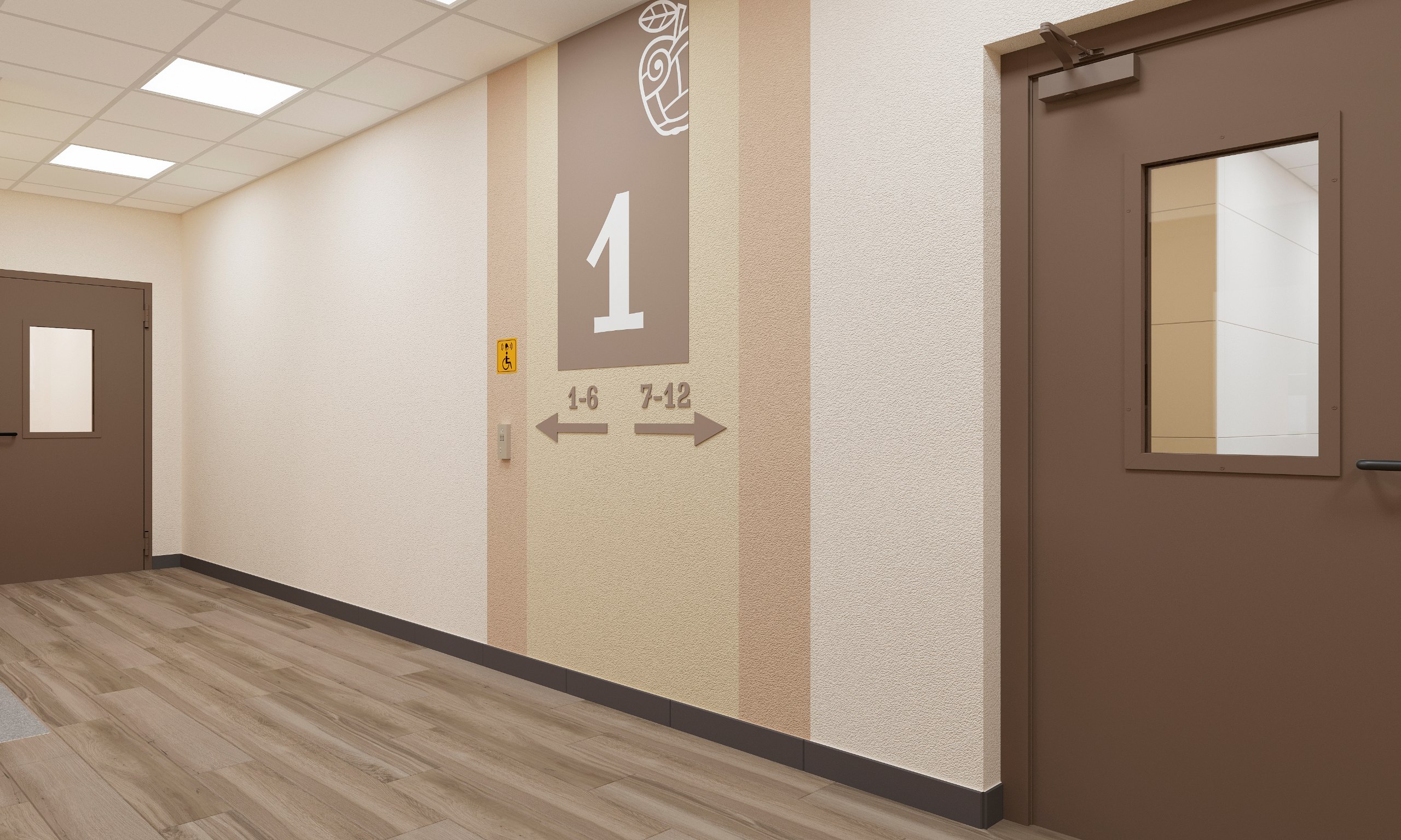 Входная группа жилого комплекса во Всеволожском районе Санкт-Петербурга с яркими акцентами.