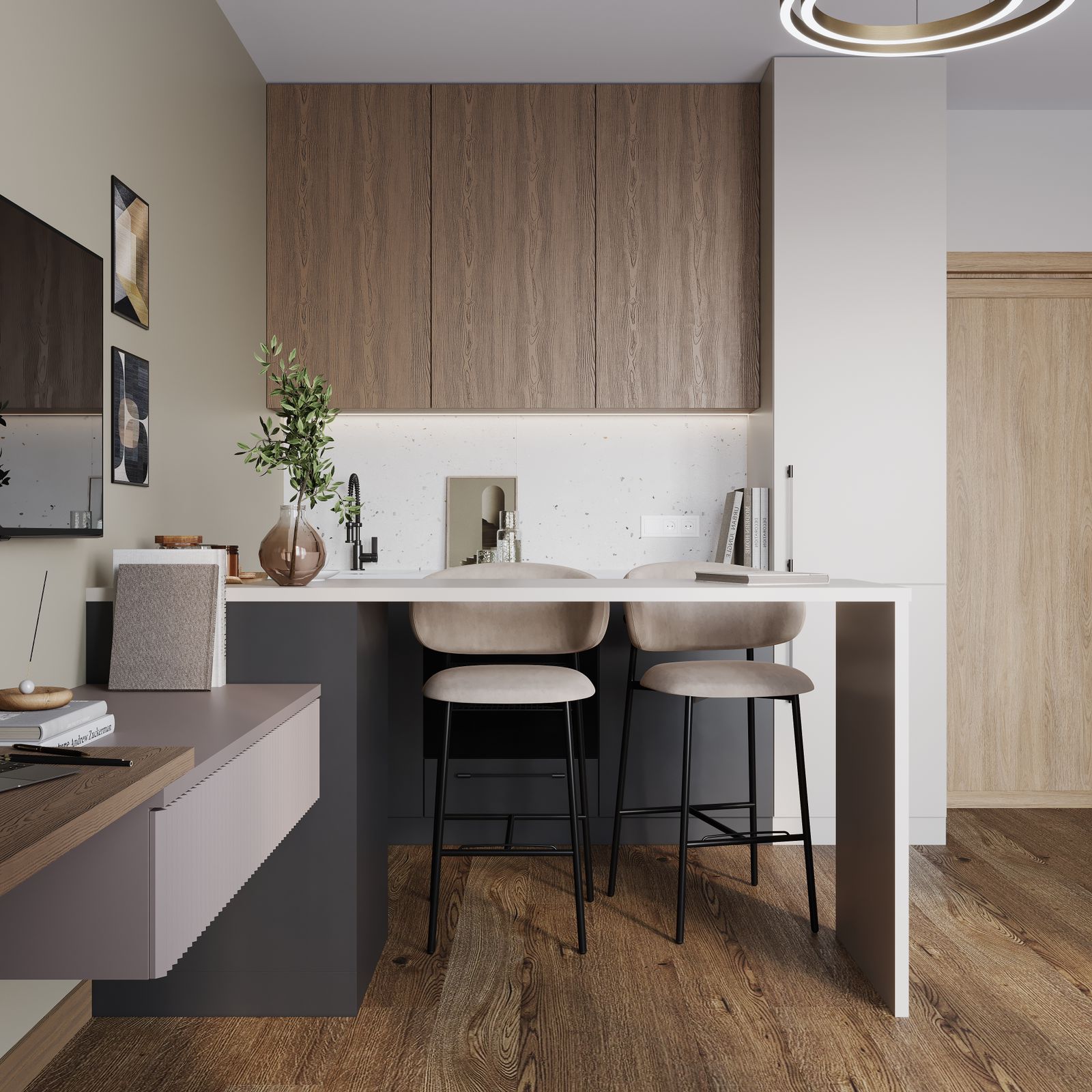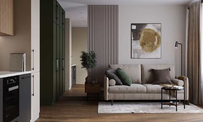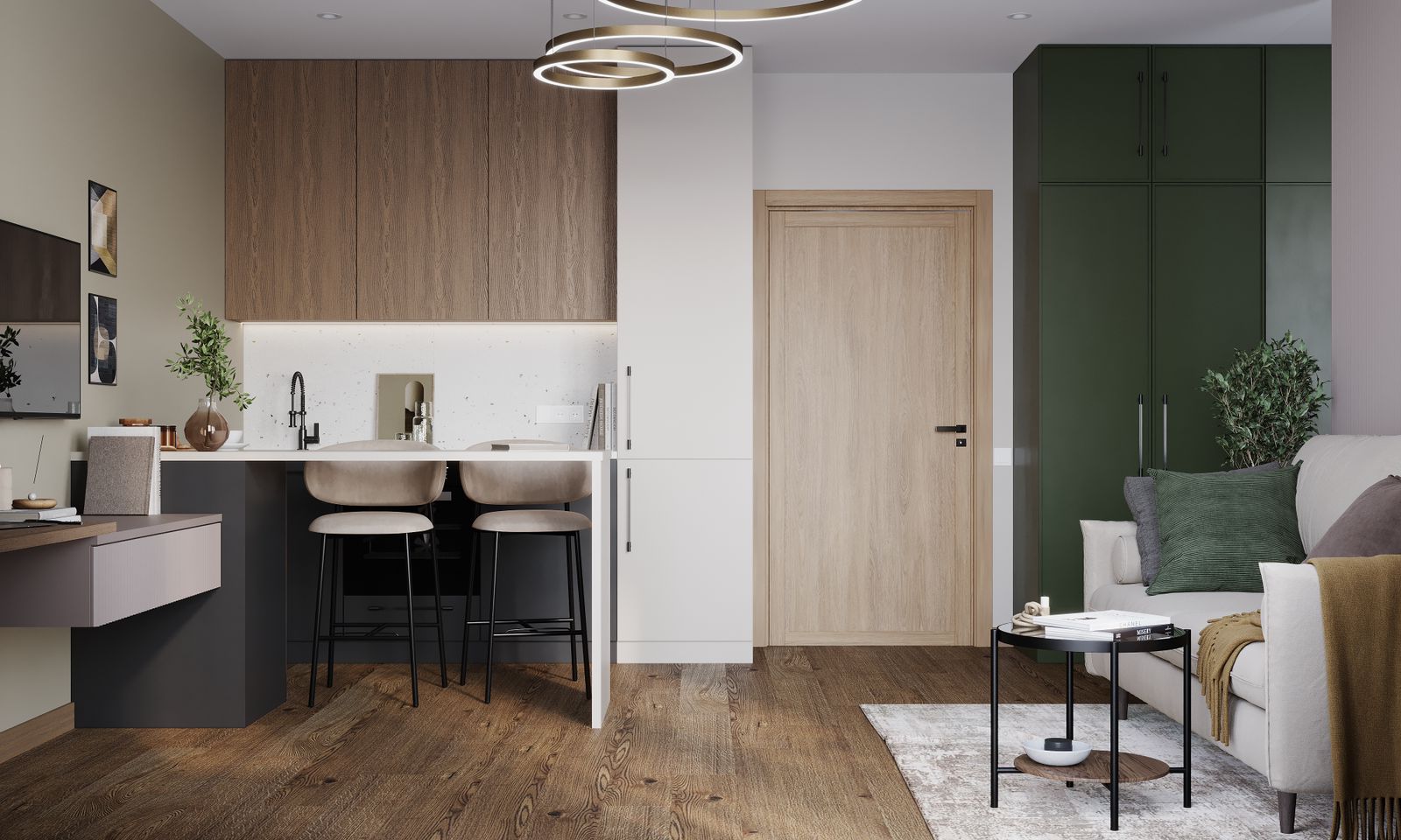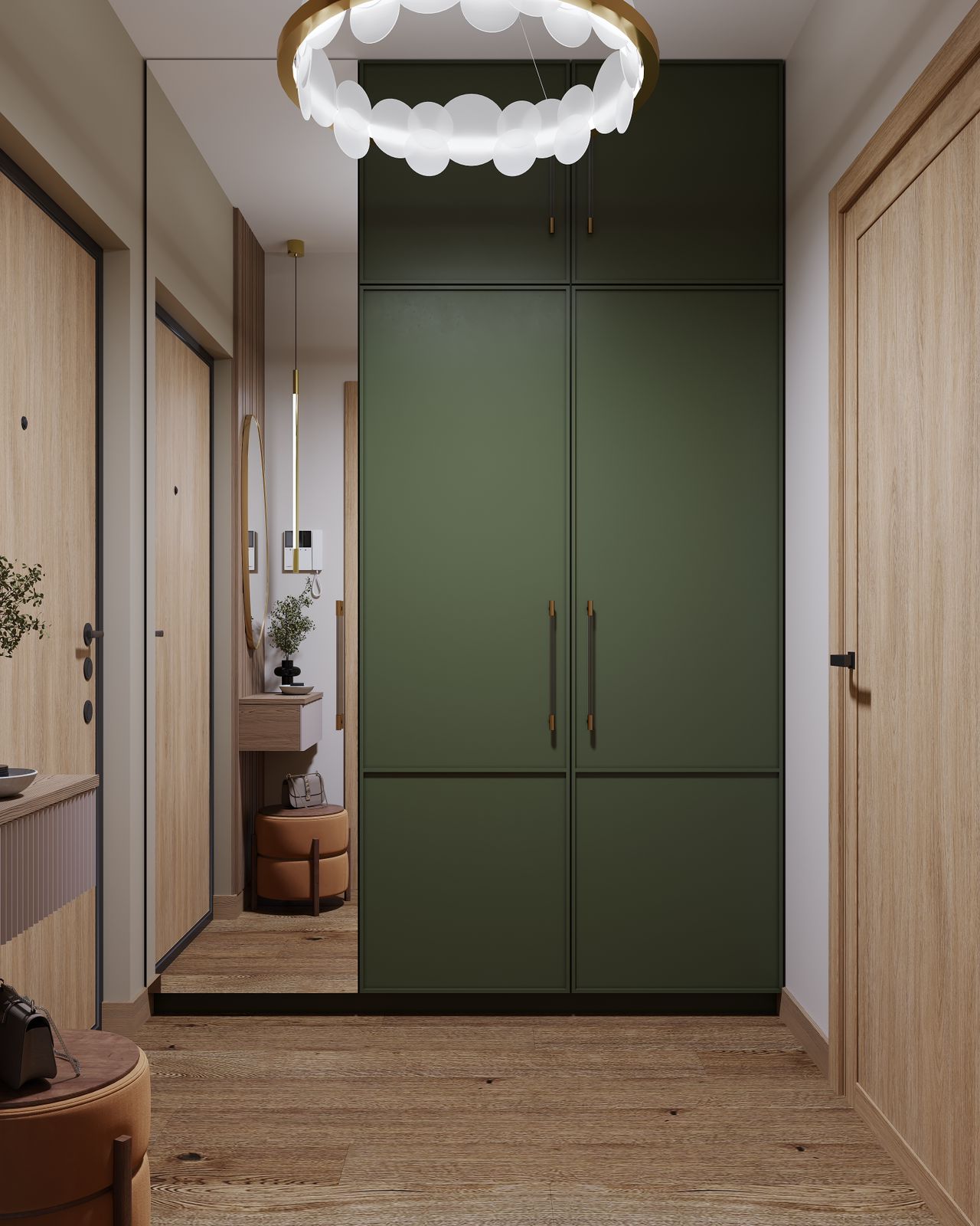 Квартира-студия в современном стиле с изумрудным акцентом 28,86 м²
