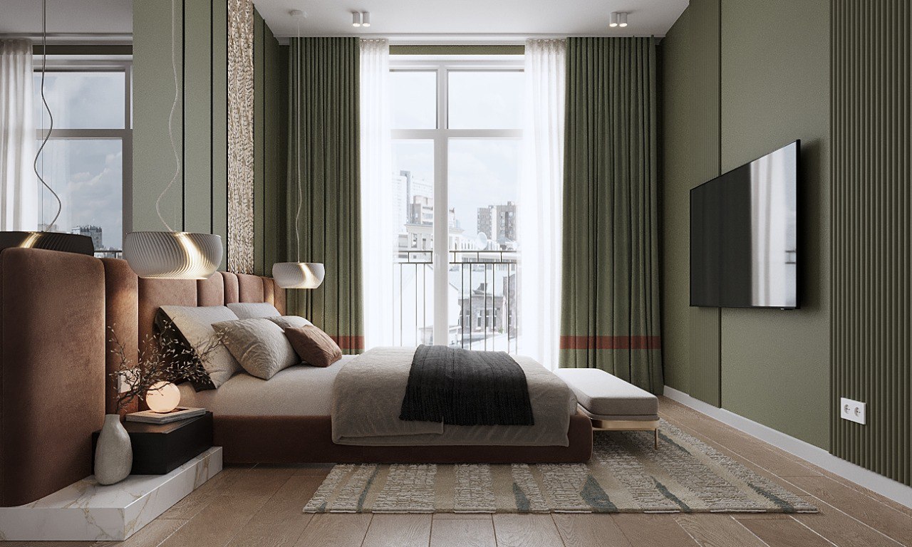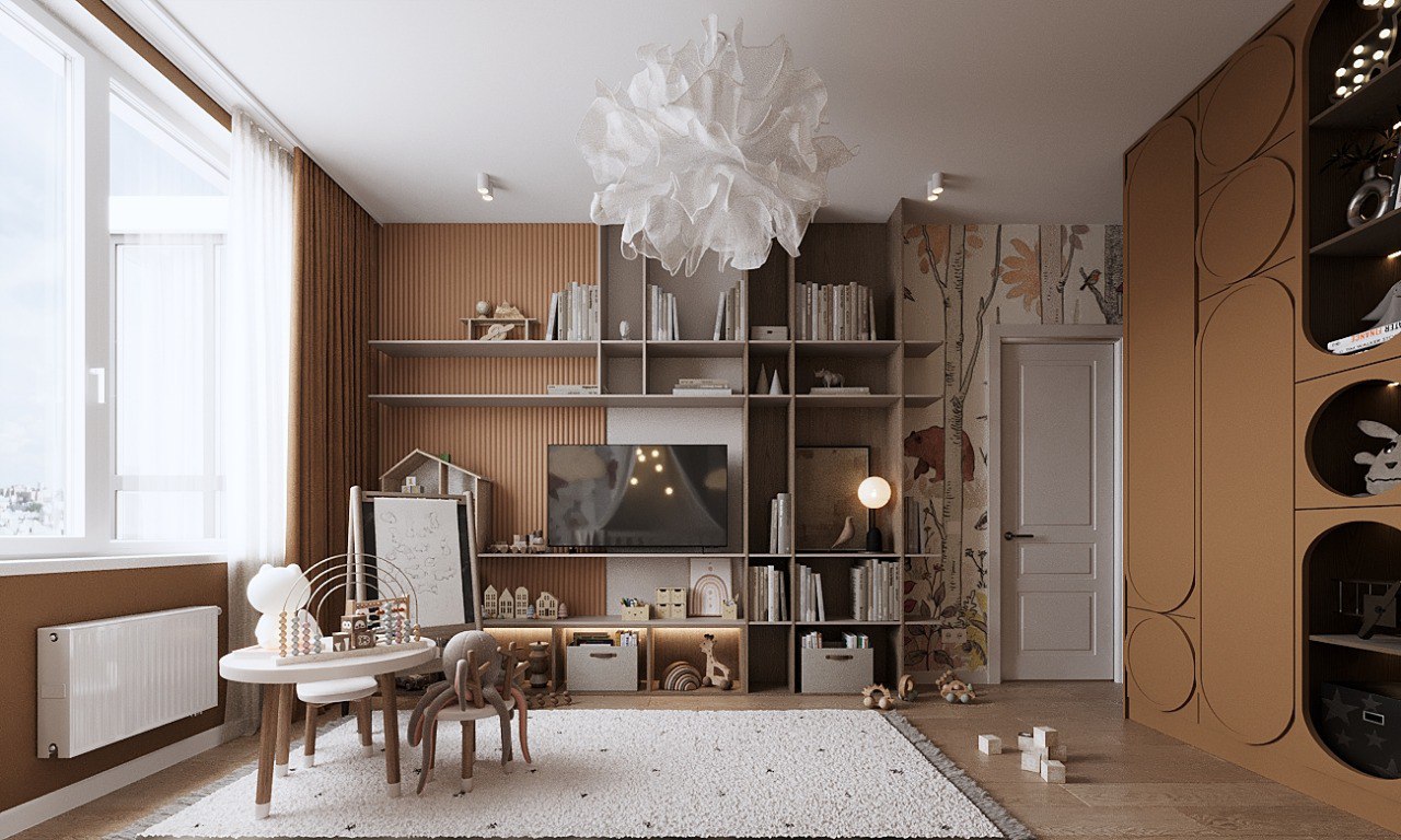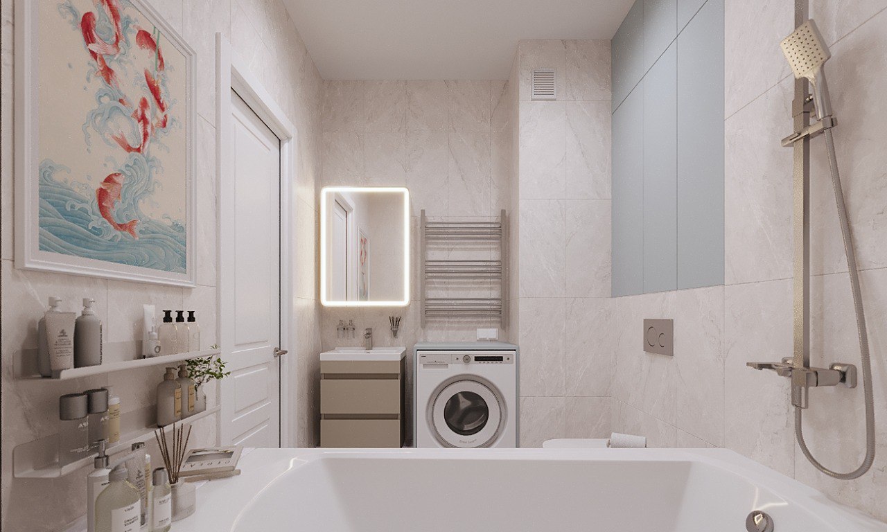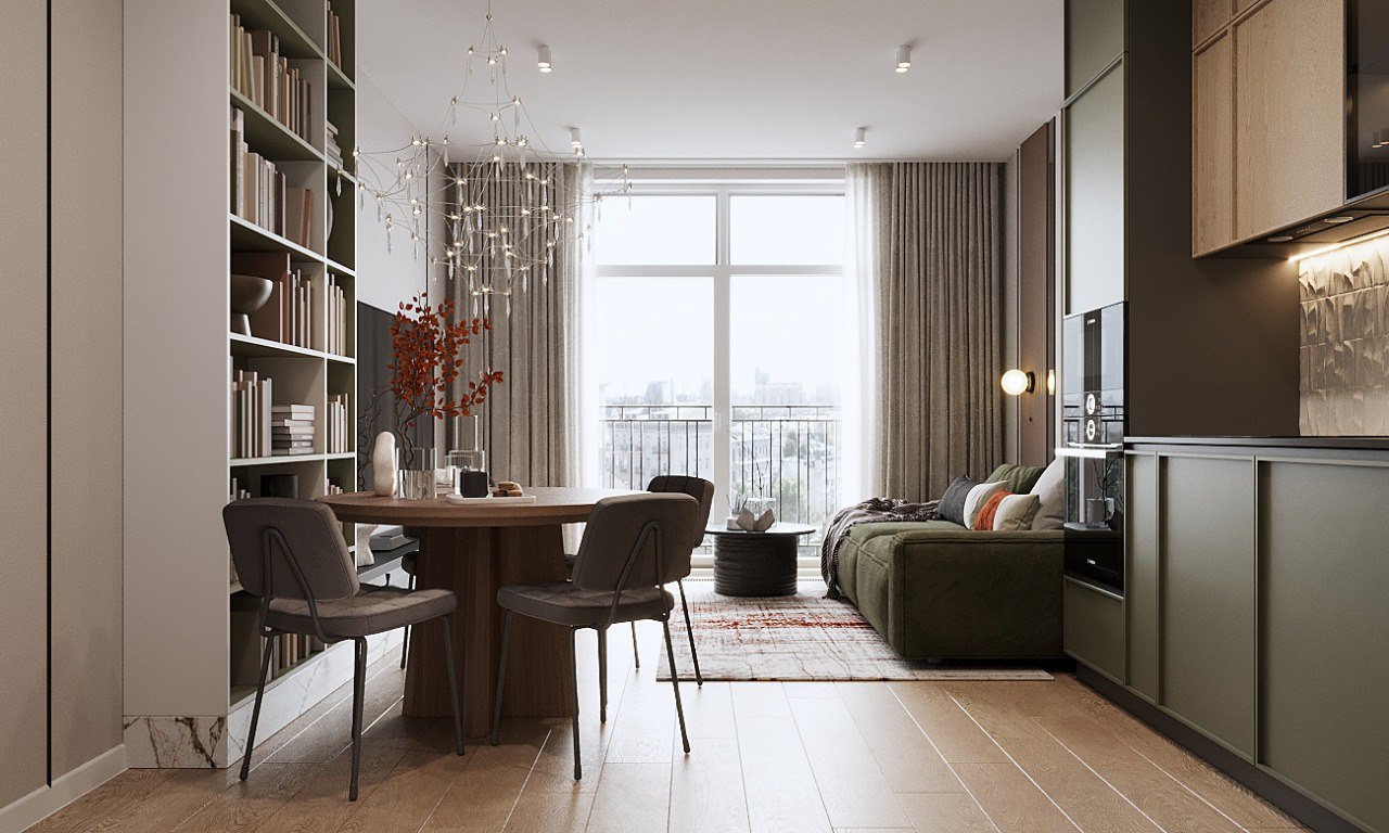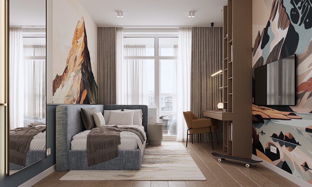 Трёхкомнатная квартира в современном стиле с яркими акцентами 79,58 м²